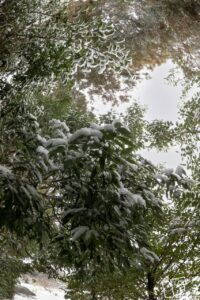 雪の後。雲間から差す夕陽がオレンジに染める、この時にしか見られない光景。